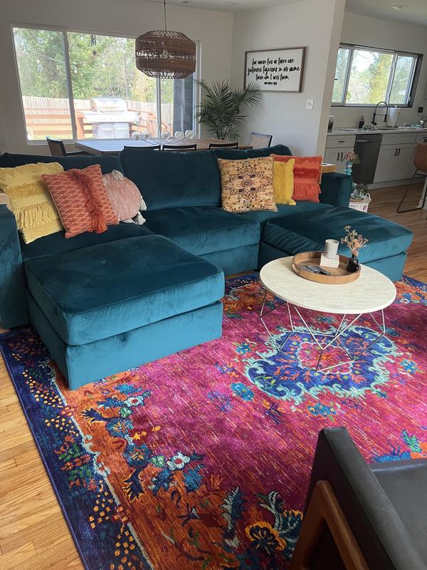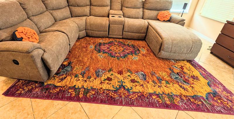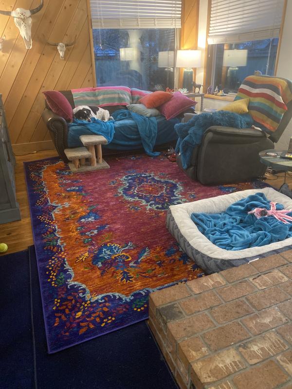 I ordered this rug for my new apartment. I was looking for a vibrant area rug that would compliment the eclectic vibe of my new home. I was hoping that the colors would be true to what I was seeing on-line, and they were. It is soft underfoot and great to sit on. I am very very happy with this purchase.
