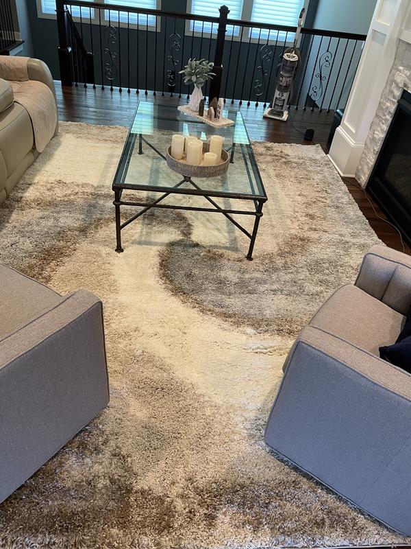 This is by far one of the most plush and cozy rugs I have ever owned. The colors are perfect against my hardwood floors and the large size fits perfectly In my great room.