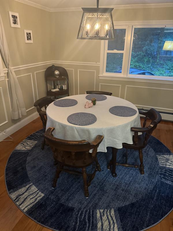 We have a captain’s style dining table, and I was looking for something nautical, but not too obvious and we loved this style.
