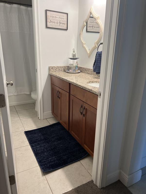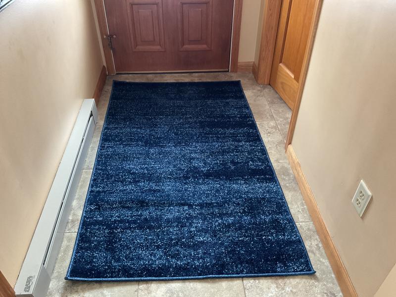 Overall I like it very much. It’s low pile which I wanted. The carpet isn’t a solid color but varies a bit from light blue to navy. It’s not super soft but is not rough at all.