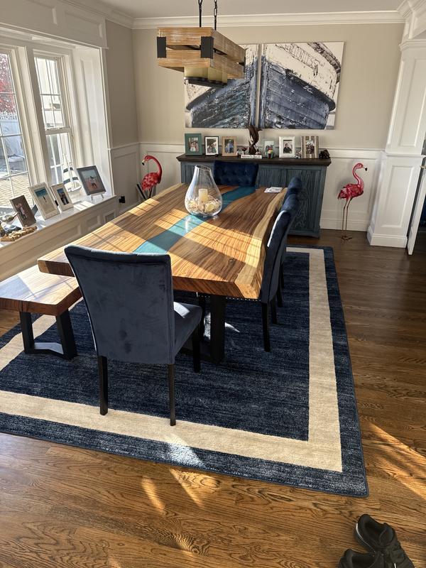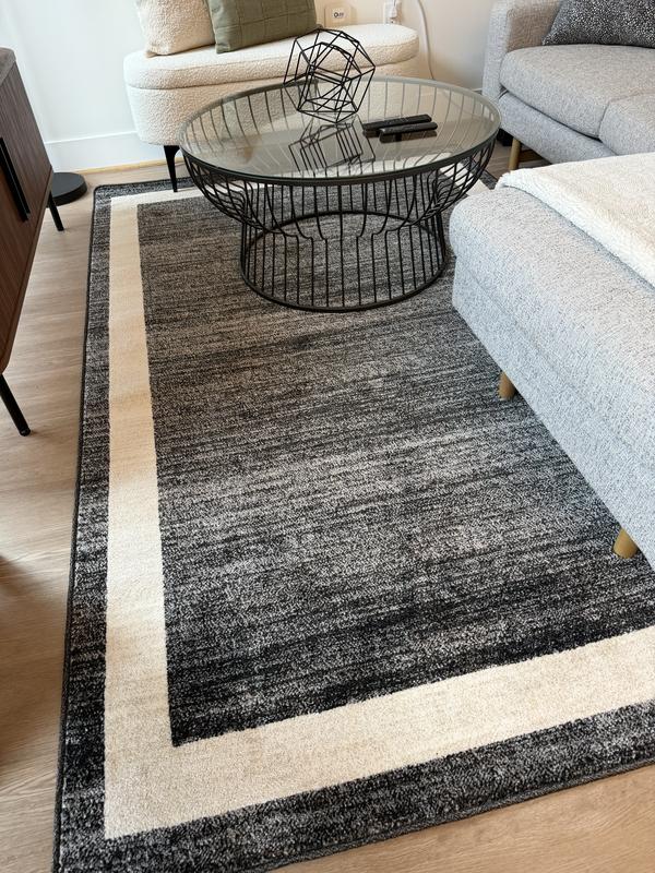 With its simple but striking white border — and subtle touches of white within its black center — this rug is just what we needed in our dining area. It contrasts nicely with our hardwood floor and works well with our black-and-white Hand Woven Geo Trellis Flatweave rug.