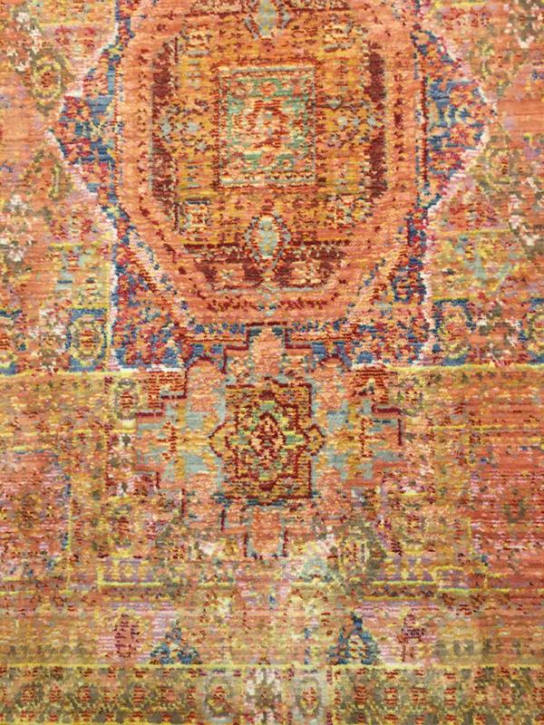 Beautiful colors and a soft almost silky texture. It is a very thin rug so you will definitely want to purchase a rug pad for comfort.