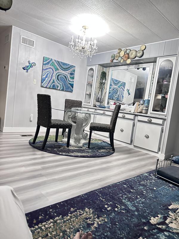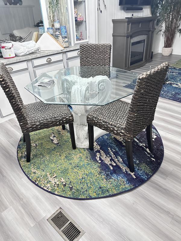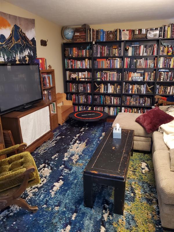 Perfect size for our large living area and goes great with everything in it! The green in it isnt such a nice color tho and i wish there was less of it and more of the black/blue colors instead, but it works for the space!