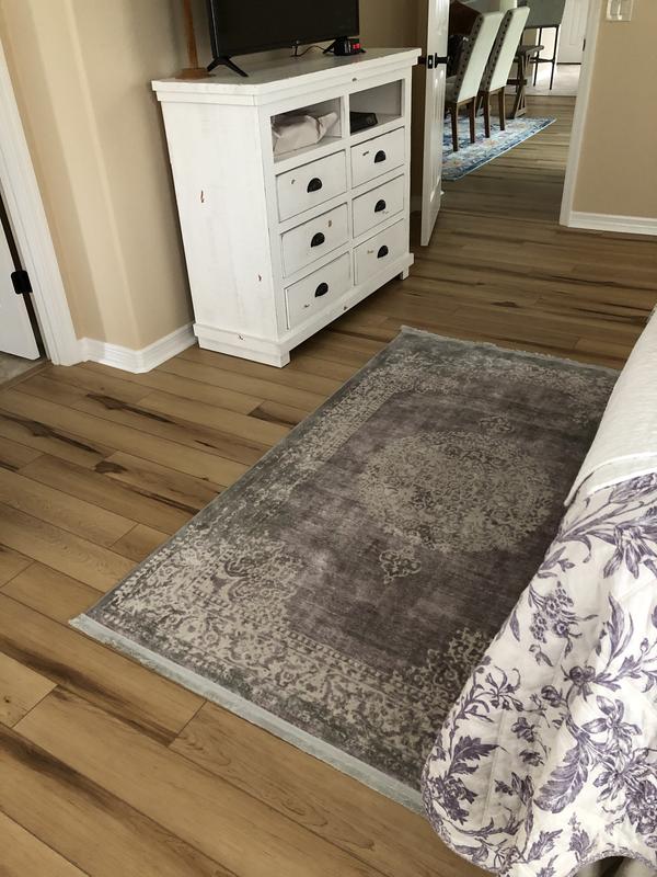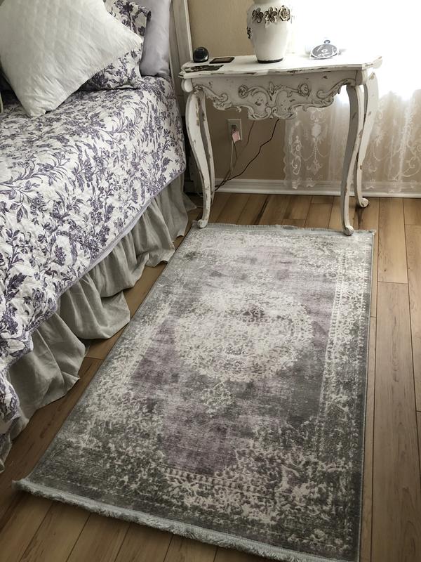 I love my new area rug. It suits my bedroom perfectly with light purple and silver shades highly recommend.
