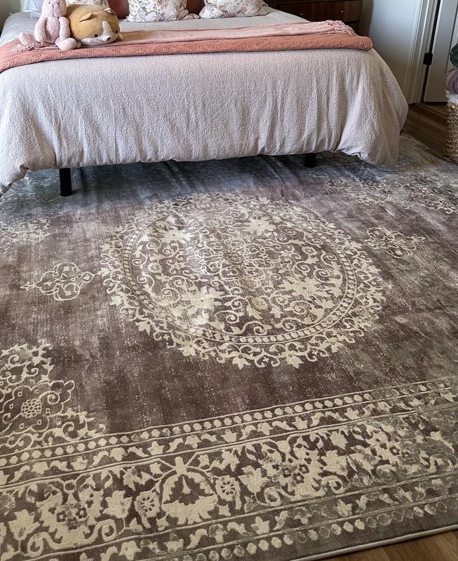 Originally purchased a round rug for a small dining area and I’ve since purchased two more sizes. We most recently purchased the rug in a 8 x 10 for our living room. I’m always surprised at how easy it is to clean. I have three kids and I hate to see stains on a rug so believe me when I tell you this rug will hide almost anything you can’t quite get out. I always use the carpet cleaner to clean up big or wet messes, but there have been many times I just blot out a stain and hope for the best and it always looks great. It vacuums nicely, too! Highly recommend.