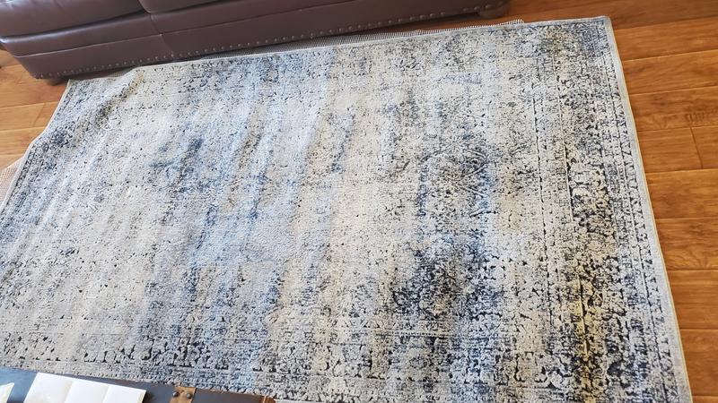This is a great rug for our living room space. It’s a pretty pattern that goes with our other blue pieces but not too matchy matchy. Also is dark enough that it won’t show too much.