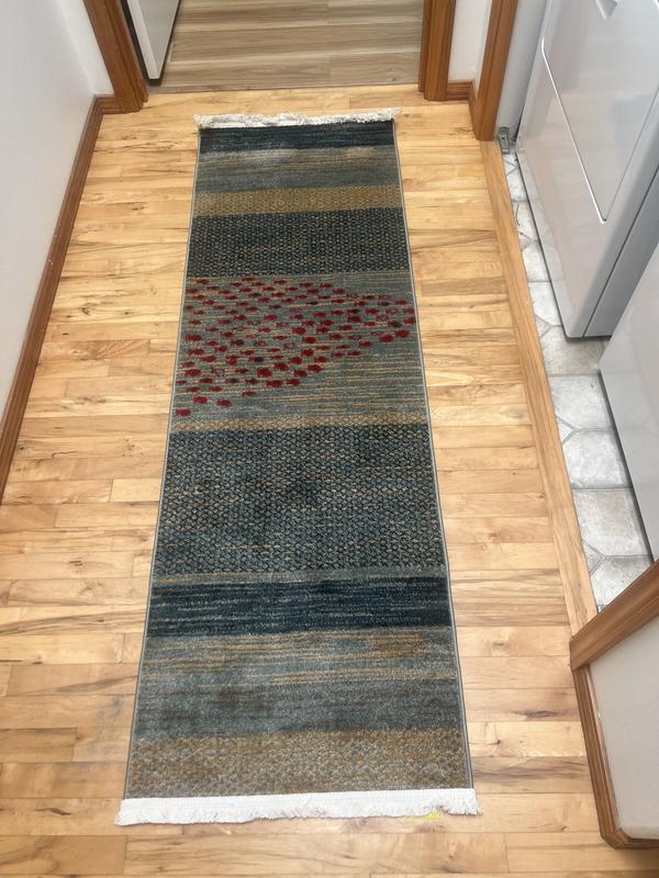 The runner is perfect in my kitchen. The colors are true to the picture. There’s no shine to it at all so it doesn’t look cheap.