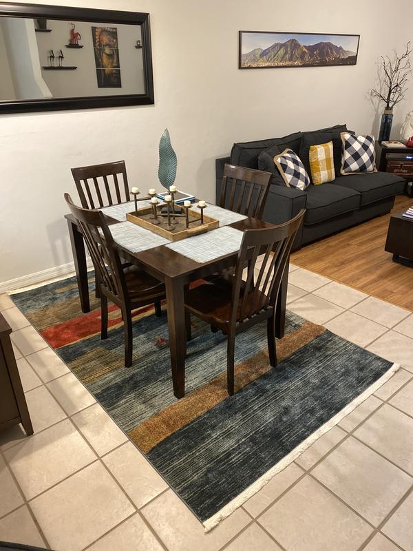 We love this rug. It is colorful and soothing and works well with our coastal fishing village theme.