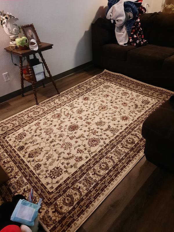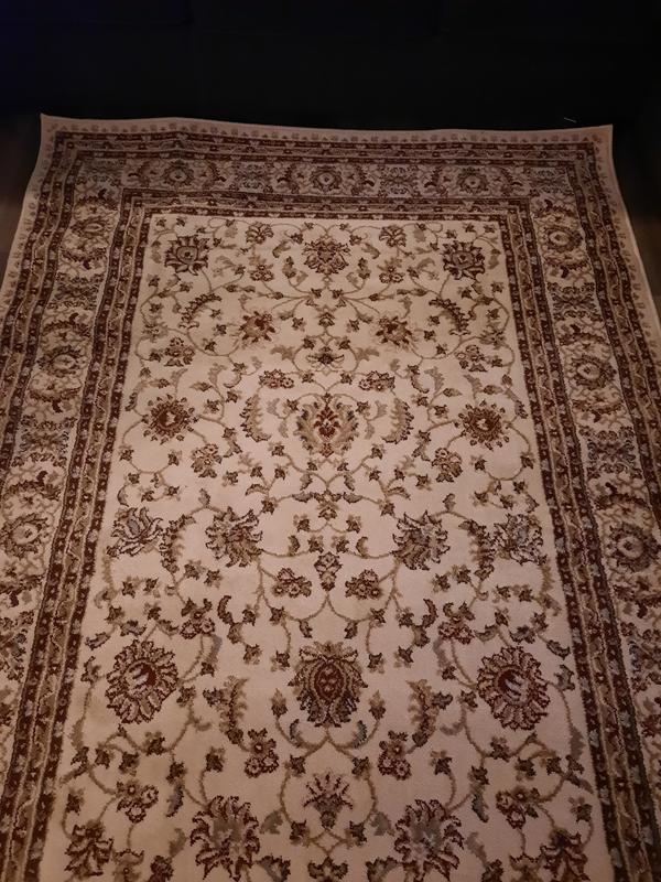 Beautiful rug and colors- only possible negative is I'm unable to get it to lie perfectly flat( likely from the tight roll it was delivered). Hopefully that will smooth out- otherwise it is absolutely beautiful