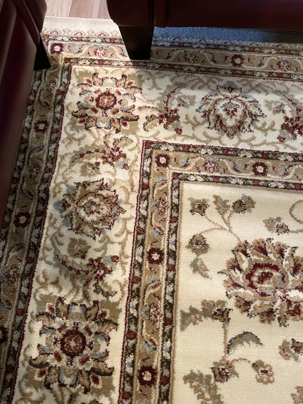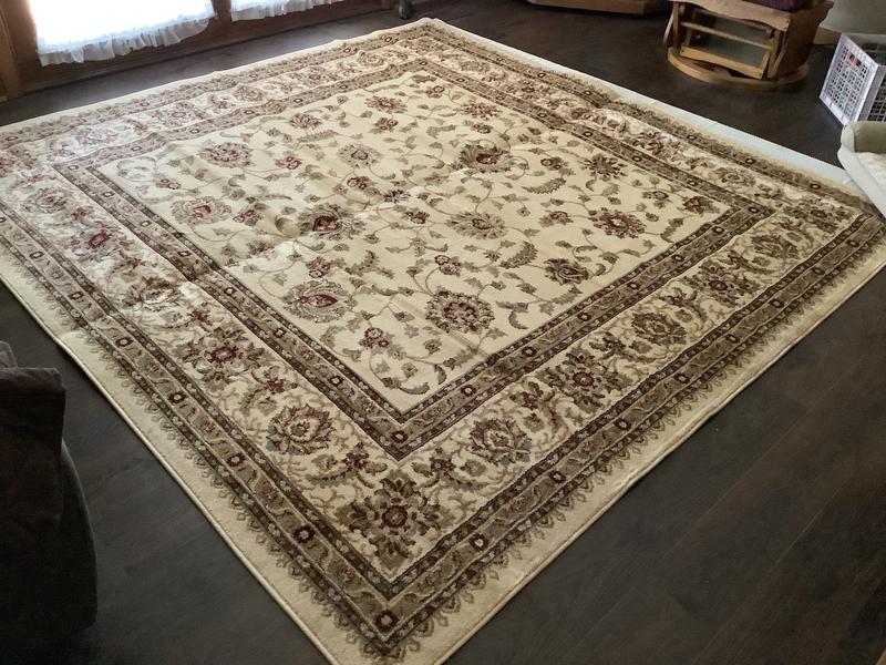 This carpet is a decent value, attractive and seemingly well made. The colors are accurate. I dropped 2 stars because the rug comes folded instead of rolled. I get the idea that shippers don't want to deal with a rolled carpet, but I don't want to deal with working the creases out of a folded rug. It takes several days and some heavy pressure to correct.