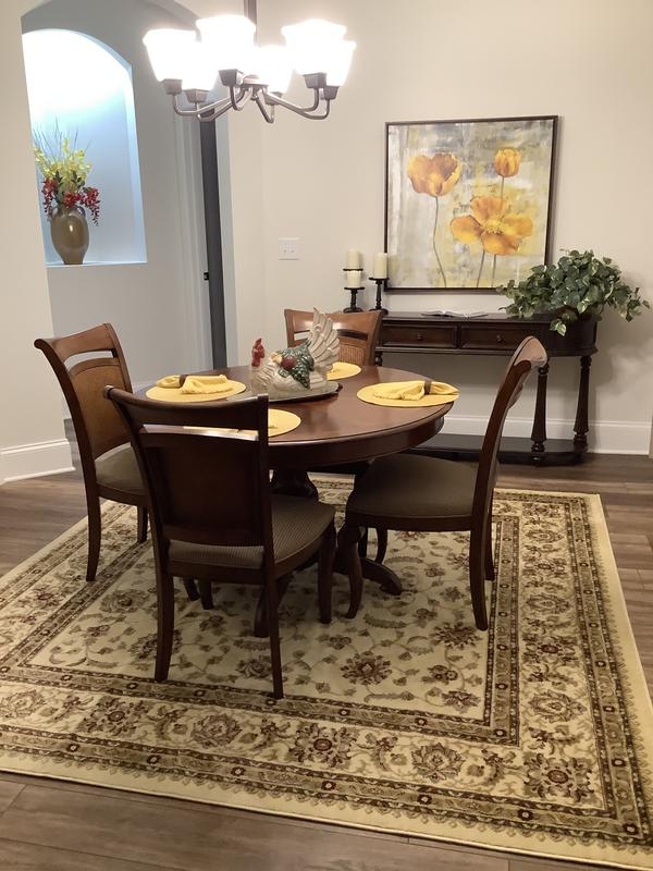 I love this rug! The colors are perfect and it looks like it was made for my family room! It is soft and yet seems durable. I would definitely buy this rug again!!!!