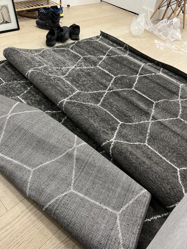Nice looking and well-built rug. Wrinkles may take some time to work out, but it’s comfy to walk on and fits with modern design