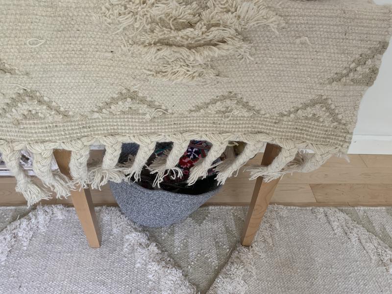 This %100 wool rug is absolutely gorgeous, whether on a wall or floor. The texture is exquisite and warming, and plays well off most other soft colors. I had to go back (twice!) to buy other pieces. Ypu'll never regret ringing this one into your home.
