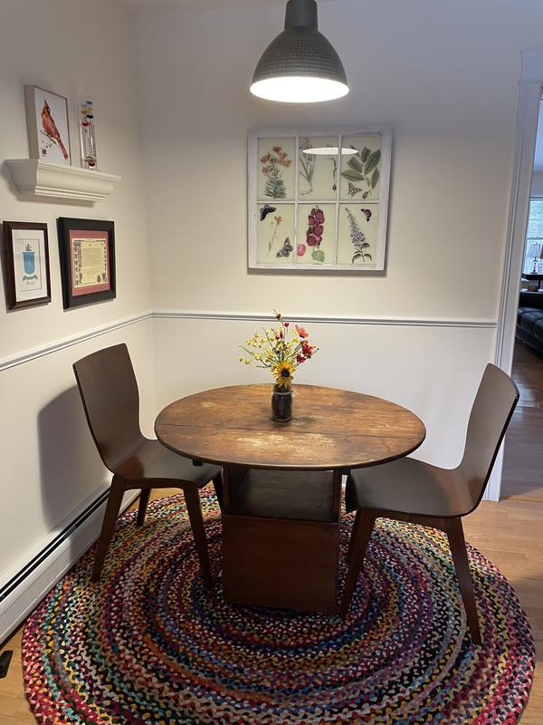 Loving my new braided rug that fits beautifully under my kitchen island. I’m trying to bring a lot of color into the kitchen as I love cooking. This rug makes me happy!