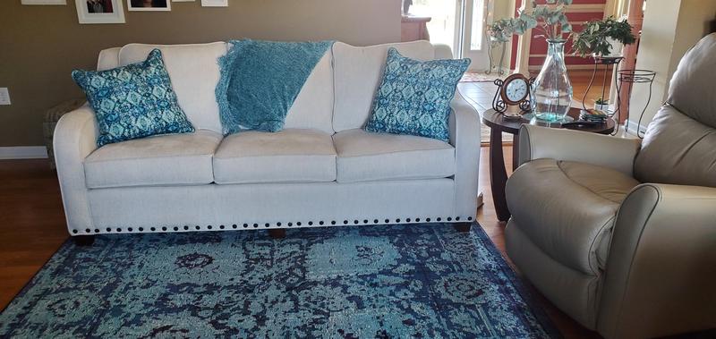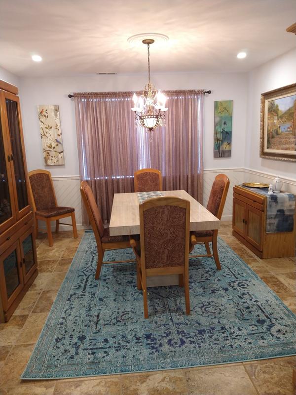 This is our third time to order a rug from rugsusa.com and once again, the quality did not disappoint. The light blue is prettier in person, it is soft, not as thick as the one we got 10 years ago, but still works. Definitely use the "see in your space" feature as that really helped envision the rug. Highly recommend!