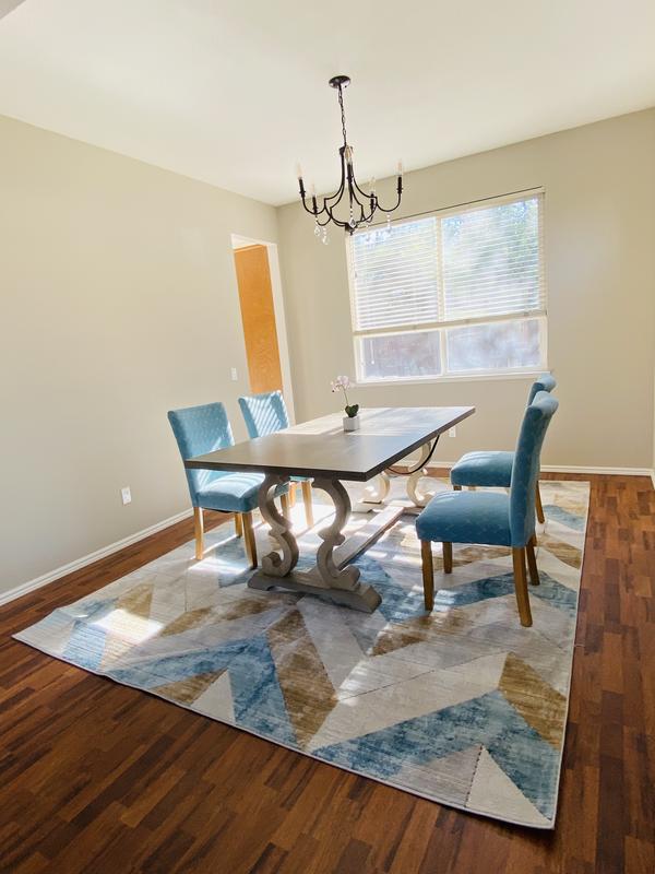 I am in love with this rug, it perfectly matches our dining room table and chairs. It is soft and refuses to slip and slide on the smooth wooden floors. It’s thin so it’s easy to clean and it’s colors are just like whats shown in the pictures online. This rug enhances the beauty of my dining room and the quality is unbeatable. After unpacking the rug and moving things around, I found absolutely NO STRAY HAIRS on the ground. I will definitely buy from Rugs.com again.
