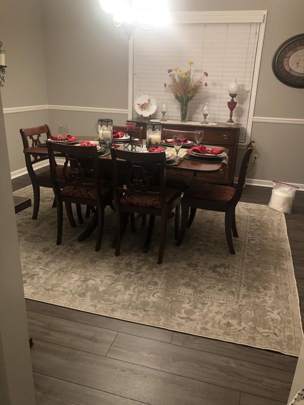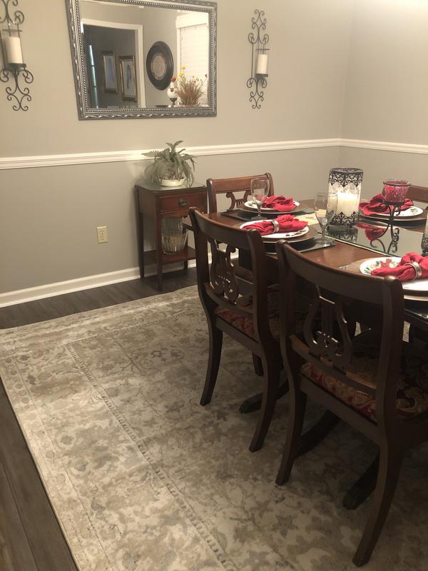 Was pretty disappointed with this rug. It’s a lot lighter in person than the online pictures. Basically it’s a light gray. Also, they are shipping them folded up and sloppily so. The rug is so badly wrinkled and kinked it still hasn’t flattened out. I believe they did this to save shipping costs but it really affects the rug, I’m not sure it’ll ever really flatten out.