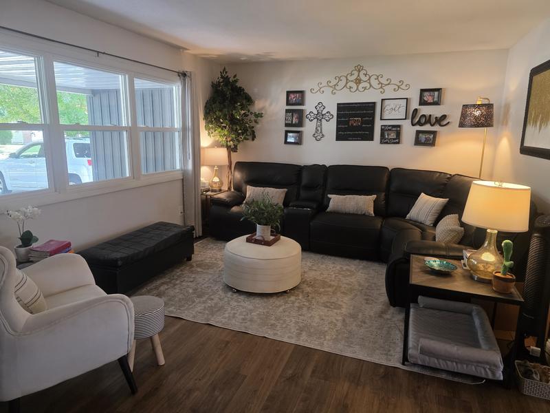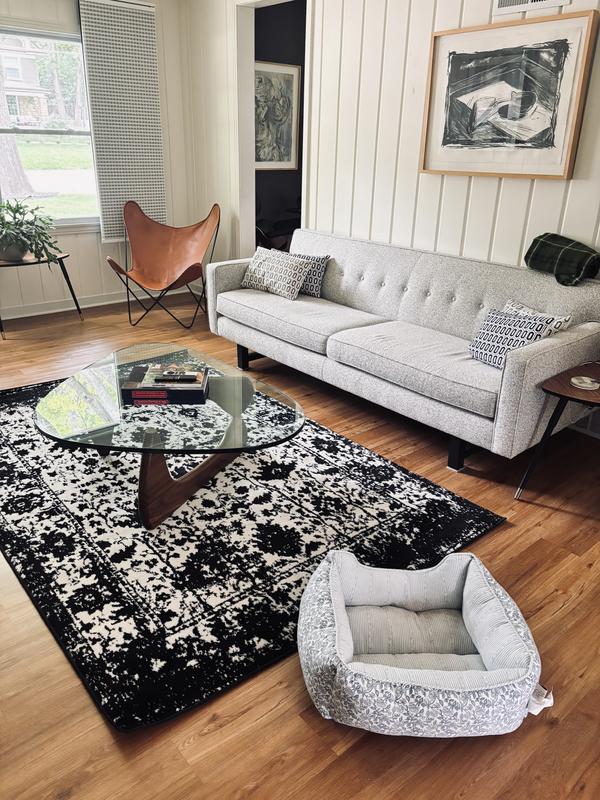 I already have the room sized rug and this is perfect for behind the couch to cut down on the traffic pattern. Even though it’s light colored, this style hides dirt and pet hair very well!