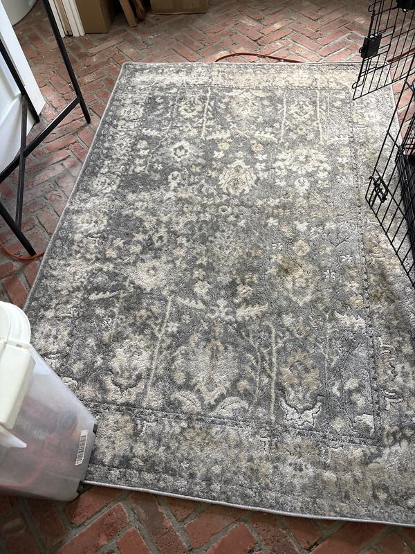The rug is soft and the mat that comes under it gives it just the right amount of cushion. I’ve had it a couple days and so far it holds up to a full house of kids and two dogs (rainy season and all). The only reason why I rated it less than 4 or 5 is because the photo is completely inaccurate. It’s much lighter in color in person and the pattern even looks different. This is a bummer as I was going for darker than my previous rug to help hide some of the dirt/wear and tear that comes with life right now but this is pretty much the same as my previous rug’s color shade.