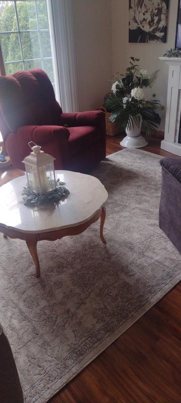 I would not have bought this rug if I knew it was almost white. The pattern hardly shows. I should have returned it but I did not, it would up in my basement instead of kitchen.