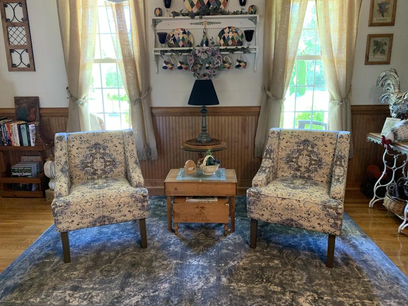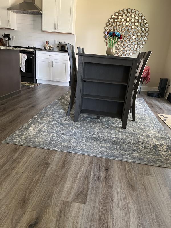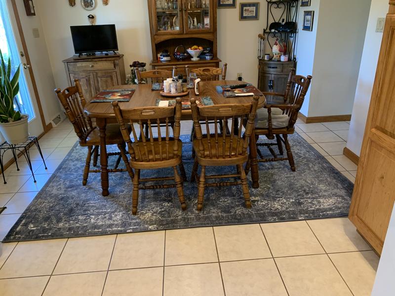 This rug is a beautiful combination of dark and steely blue. It’s well made and a perfect addition to our bedroom.