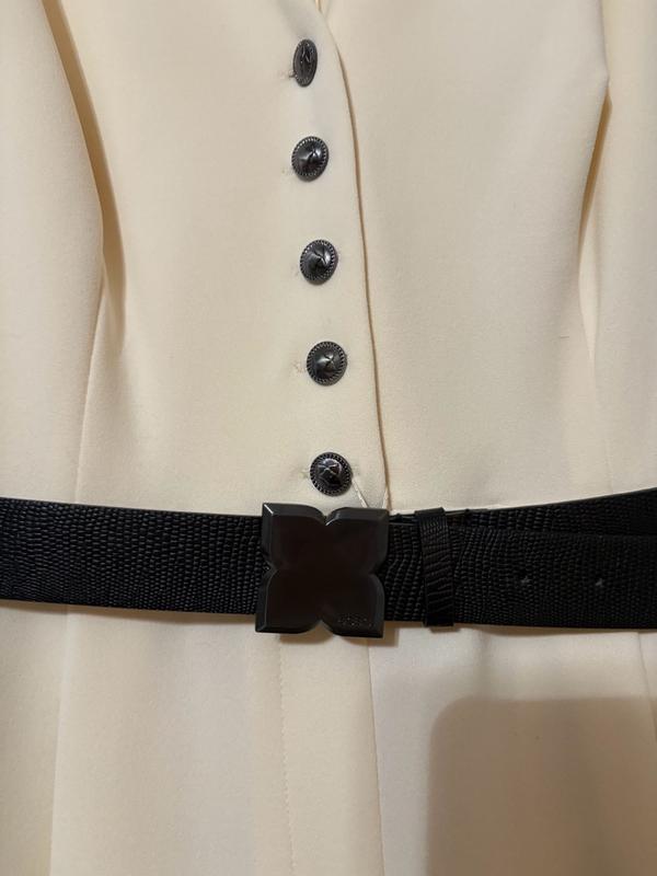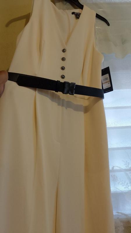 I love a good jumpsuit, as they tend to have a slimming effect on me and offer an instant confidence boost. This BCBG jumpsuit nearly fit the bill, as the length is perfect for a tall woman like myself and the ivory color with black belt and buttons add a layer of sophistication to it. I’d give it 5 stars if the quality of fabric matched the price tag. It’s 96% polyester and you can see right through the waist and below in well lit areas or outside in the sun. The top half is double lined so it isn’t an issue. I couldn’t confidently wear this without wondering if everyone can see my underwear underneath.