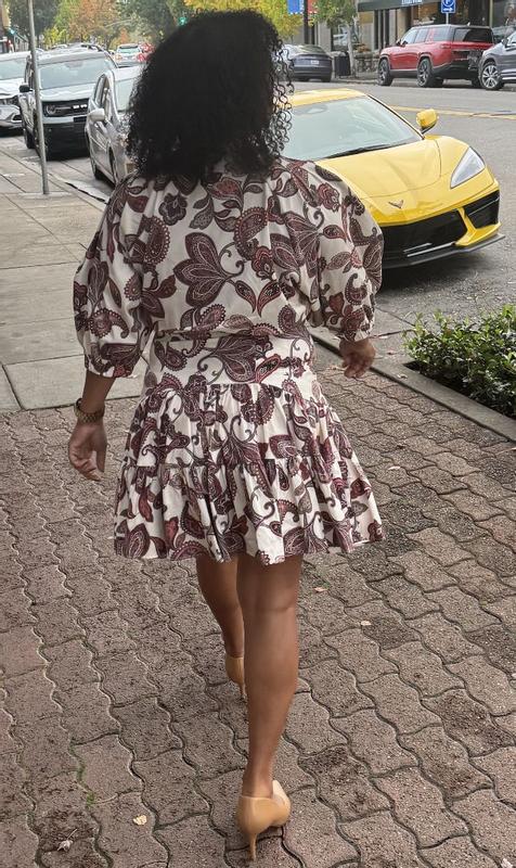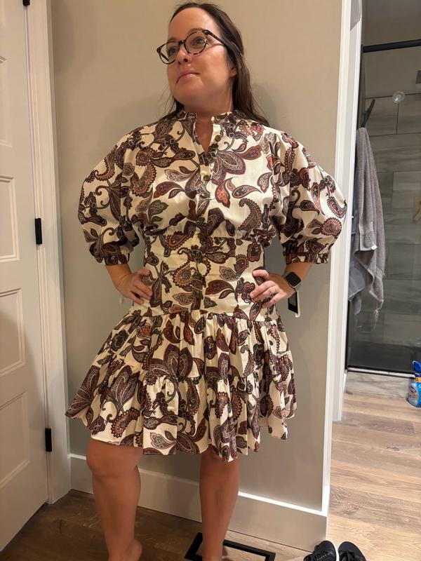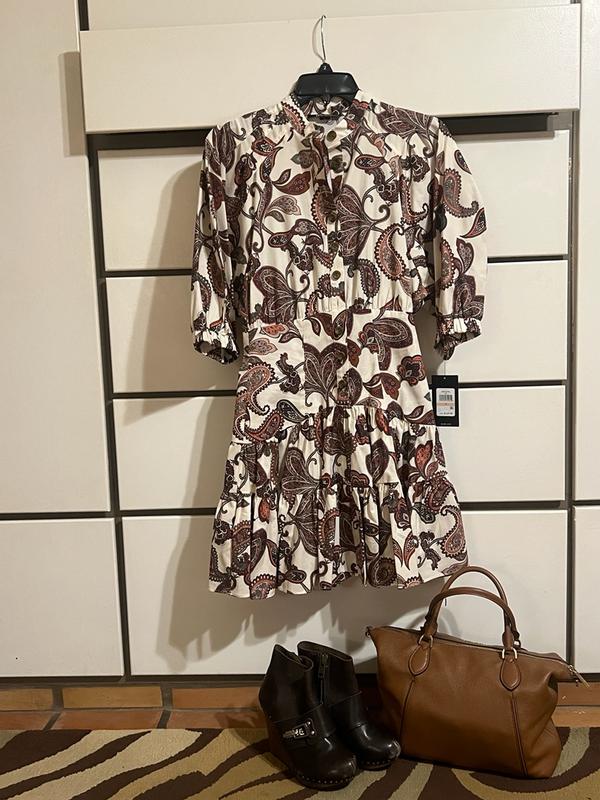 Such a cute and comfy dress! It’s the perfect length and a very stylish fit. So nice for fall and easy to dress up or down. The print and fabric is so beautiful!