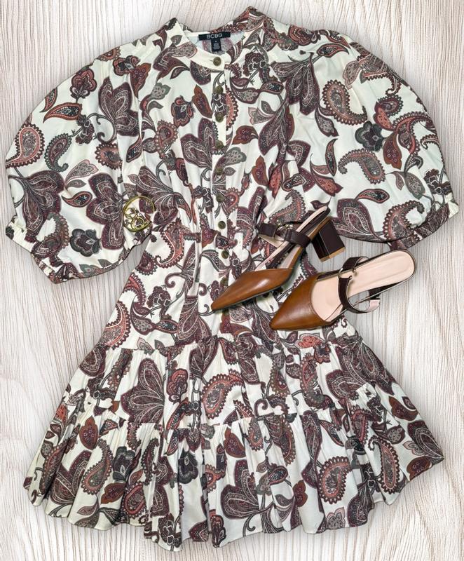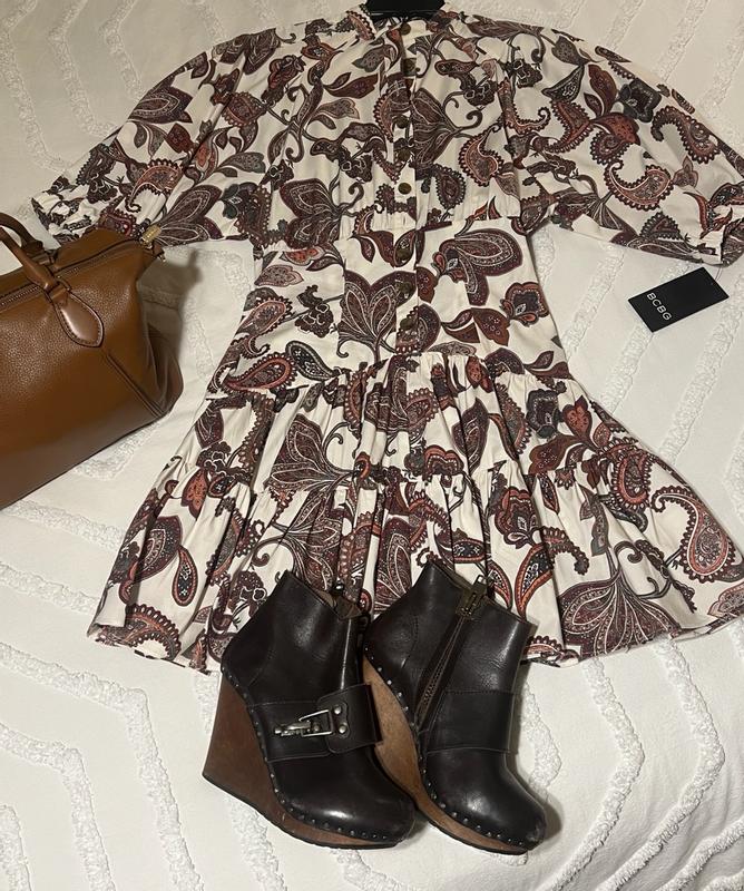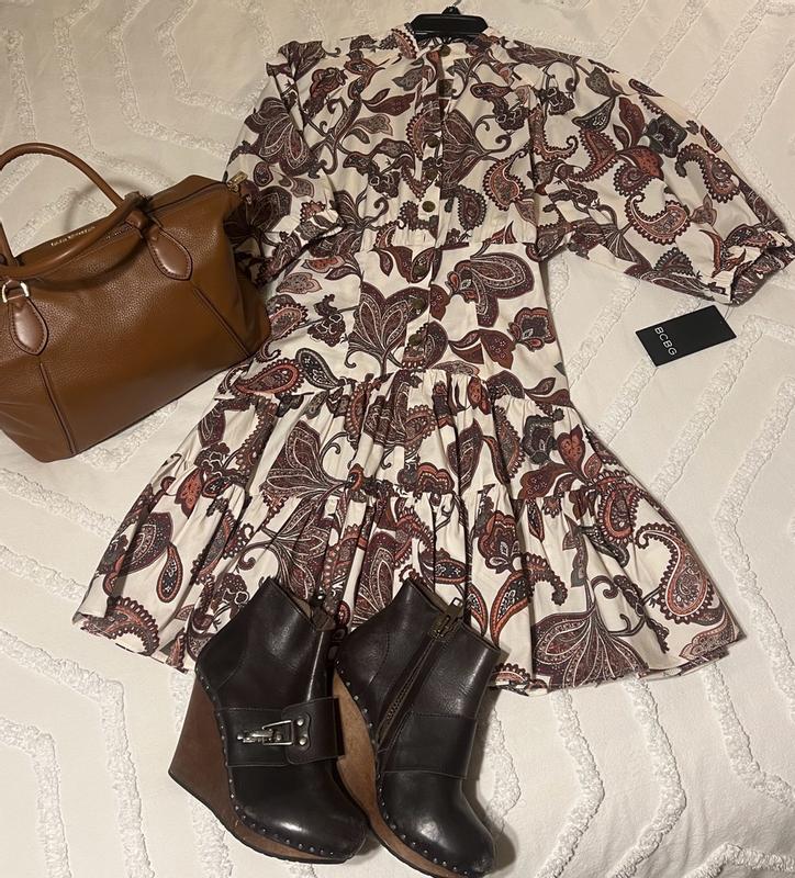 BCBG’s collared short-sleeve fit & flare dress is so cute! Looking at the stock photo, I felt that maybe it’d be appropriate for a more conservative look/event, but it hit mid to upper thigh for length, had cute full, almost puffed sleeves, and the empire waist lends to a more exaggerated flare in the rest of the dress. The paisley print is cute and will fit multiple women and styles. The print is darker colored than the pic, but is still super cute, especially for fall. I think it’s a great quality fabric and should last for seasons to come. The only thing I didn’t love about the dress was that it’s relatively stiff, and would need to undergo several washes or dry cleans to get to a feel that I could wear for a long period of time. I’d style it with cute dark booties, a small leather purse, & either gold or black jewelry. I was gifted this product in exchange for my honest review.