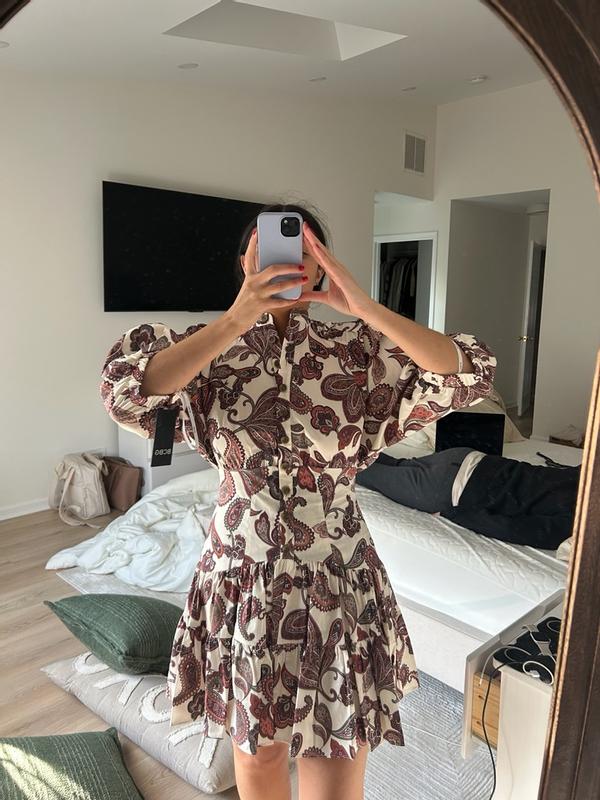 This dress is so beautiful. It is well made and so flattering. It fits me very well- for reference I’m 5’9”, 130lbs. I love the midsection that is almost corseted. Puffy sleeves don’t normally work well on me but these lay perfectly!