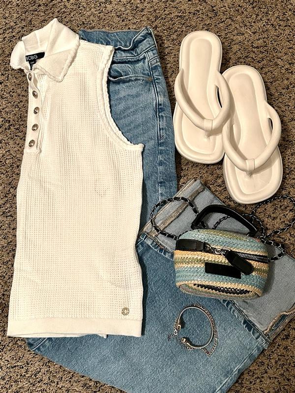 Women's Cotton Collared Sleeveless Knit Top