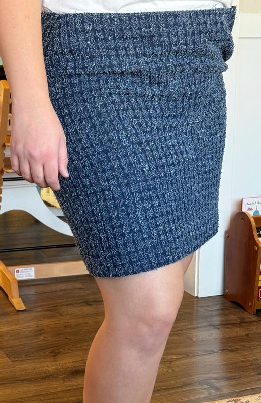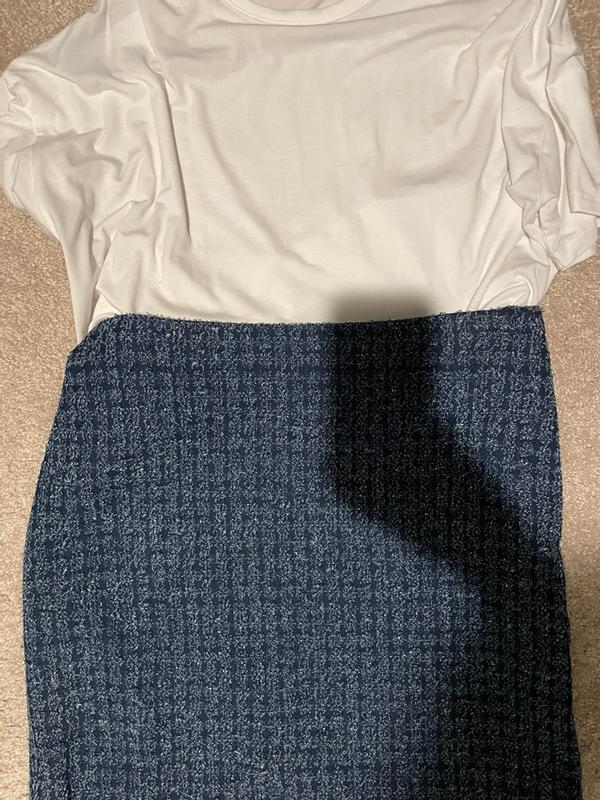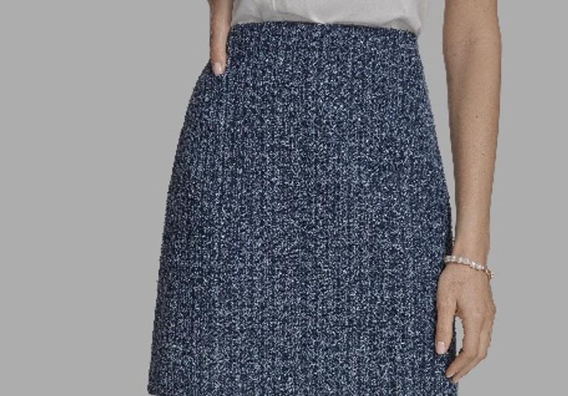 I received a BCBG skirt in indigo color to review. Beautiful skirt. Straight line silhouette. Unfortunately was too snug for me. The quality was nice and has a gold zipper with clasp. Would be great for work or event. Can be dressed up or down.
