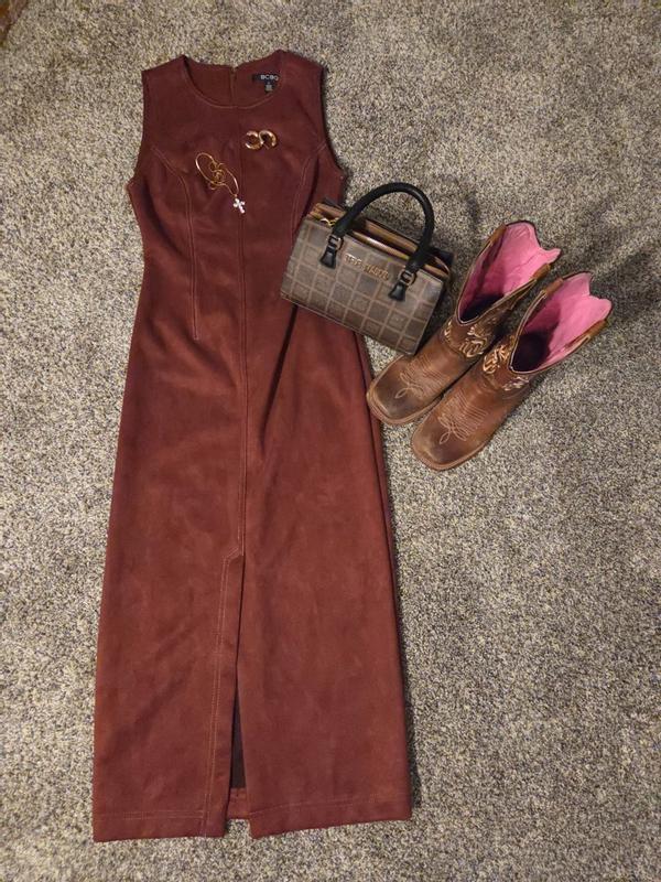 I adore this dress, I am not typically a suede person but it’s so gorgeous. I accidentally ordered a 0 (typically a 4), but it fit anyway so you may have some room when it comes to sizing. You can tell how very high quality it is and I am excited to wear it once it cools down!