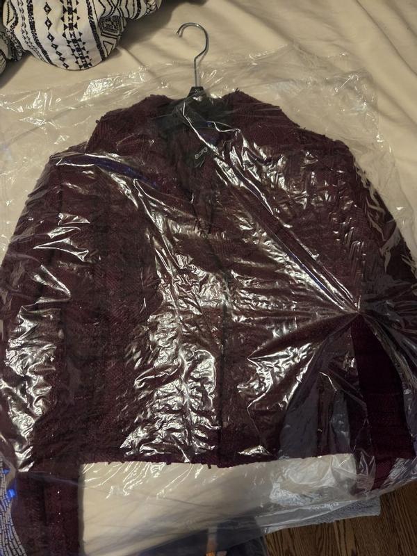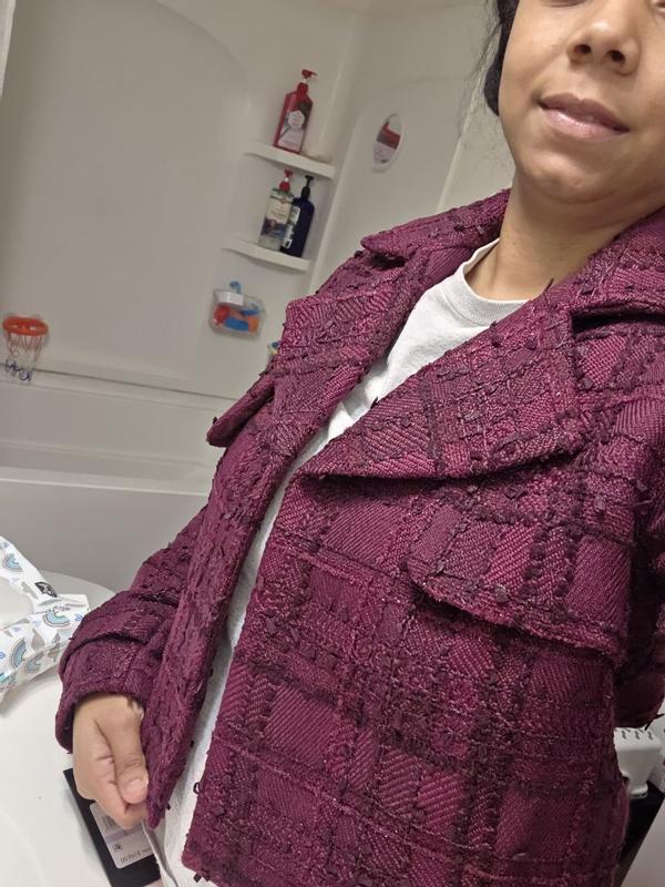I received the BCBG Novelty Open Front Jacket in Crimson Velvet Multi, and I am absolutely in love with it! The color is rich and vibrant, perfect for adding a pop of sophistication to any outfit. The cropped design is incredibly flattering, and the textured fabric feels luxurious against the skin. I've received so many compliments every time I wear it! It's versatile enough to pair with both casual and dressy ensembles, making it a staple in my wardrobe. The quality of the jacket is outstanding, and it's evident that BCBG paid attention to every detail. If you're looking for a statement piece that combines style, comfort, and quality, look no further than the BCBG Novelty Open Front Jacket. It's worth every penny!