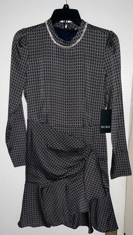 This dress is just okay. I expected more from BCBG. Nice feeling material and fits nicely with a bit of poof in the shoulders. Not a fan of the side bow area because of how the fabric lays exposing the backside of the fabric. I would also much rather wear my own jewelry to wear than what is attached to the dress