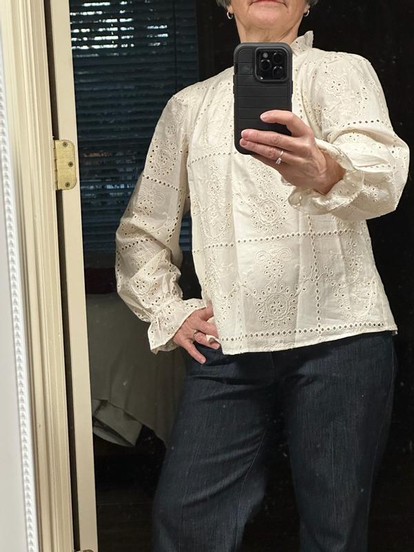Women's Long Sleeve Eyelet Top