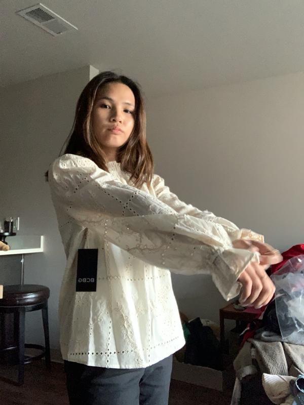 This BCBG Long Square Eyelet Pattern Shirt is the