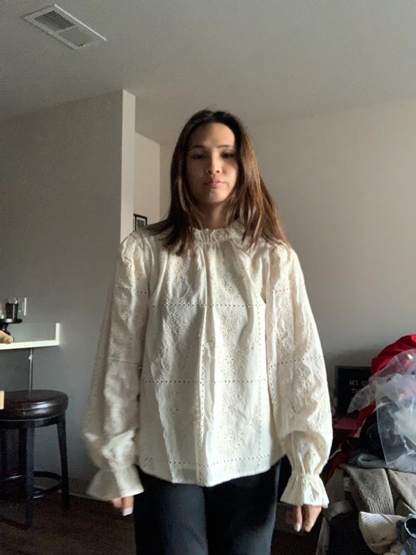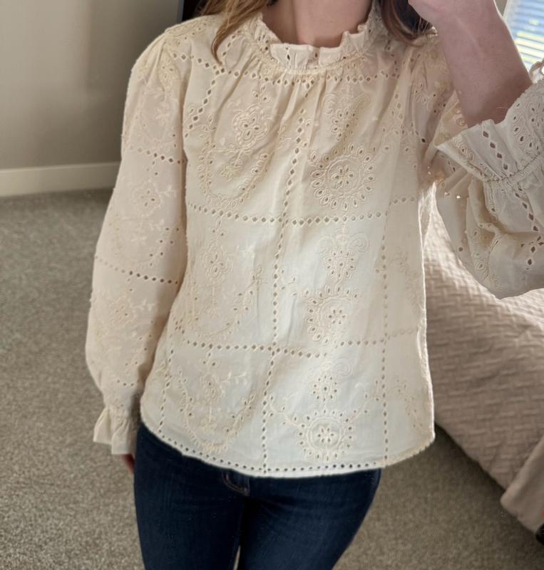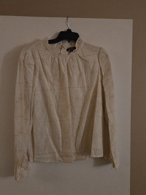 Thank you @BCBG for this delicate eyelet blouse. This eggshell hue will go with anything. Dress up with a skirt for the night on the town or dress down with a pair of jeans. Love the fact it’s beautifully lined, high neckline with elegant long sleeves.