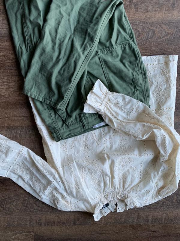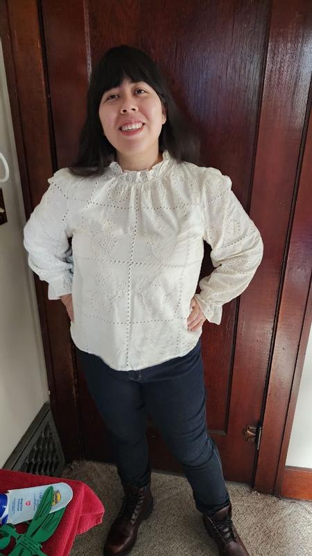 I like the color and the style of this blouse however it was not the most flattering for my petite figure. The arms were much longer, and the overall blouse felt large in general for my frame. The quality of it is decent, but not what I had expected. I like the color and I could see myself matching it with pants like these, but I couldn’t see myself styling it with much else by the way it fit me. I am 4’11”