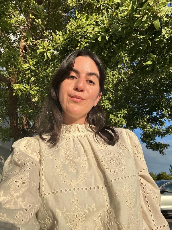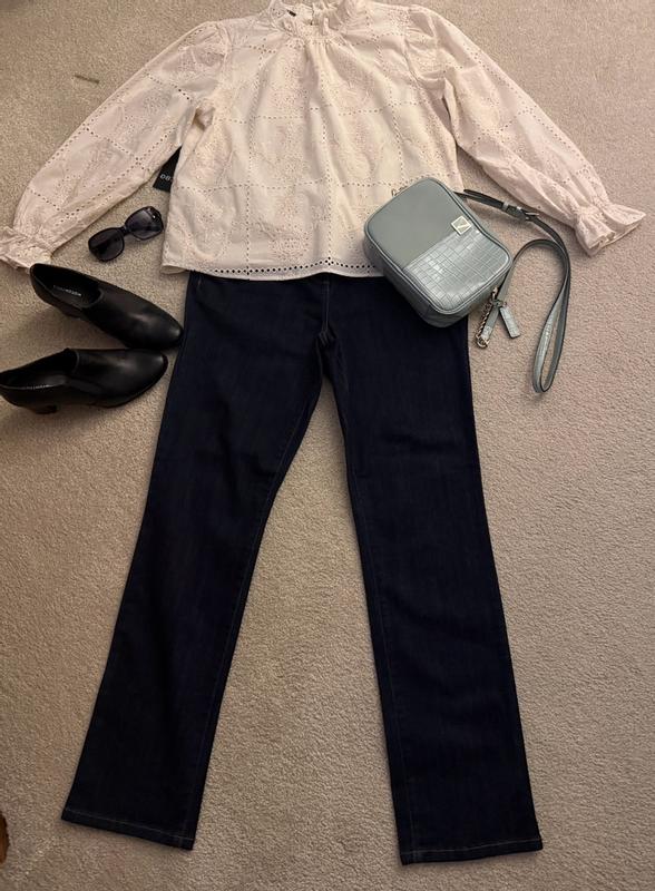 This top is so feminine and pretty. I paired it with a dark green wide leg trouser and it looks beautiful. I’m also going to wear it with a cardigan and dark denim. It is very light and airy. The details are everything. It is very comfortable to wear.