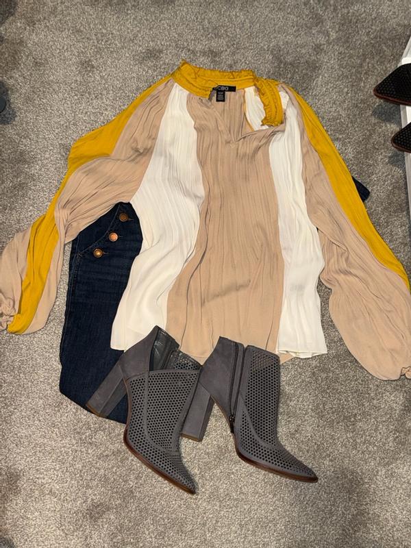 I really wanted to like this blouse. The material is good quality and feels nice, but the fit just isn’t flattering at all. Sadly, it didn’t look as expected — overall, pretty disappointed.