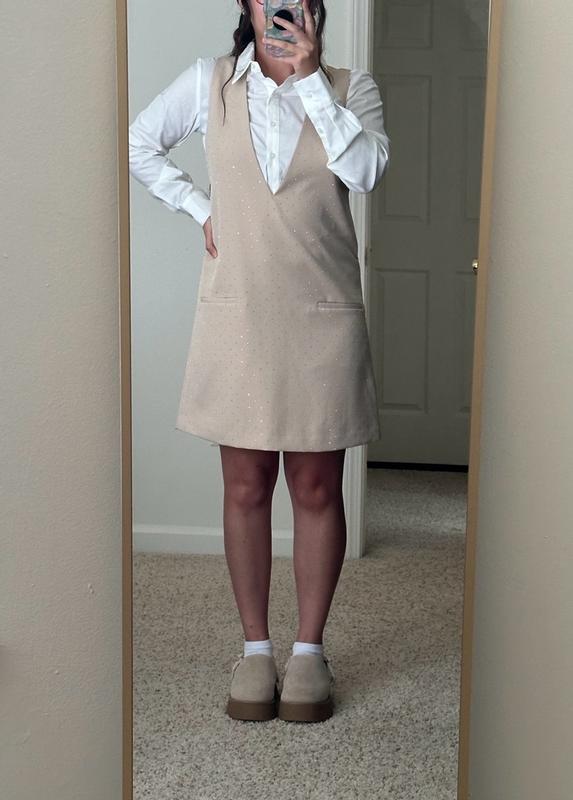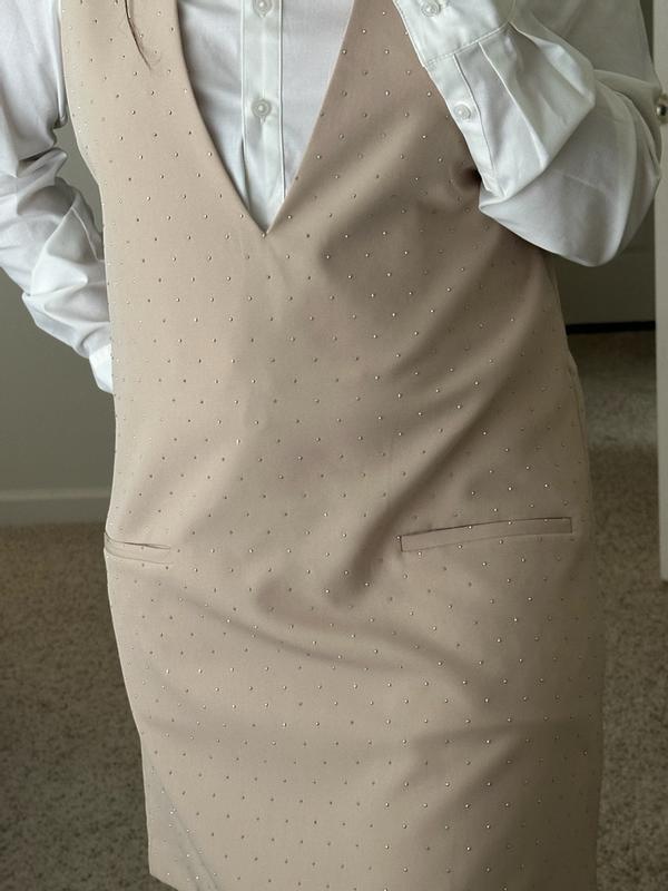 Wow! This outfit is stunning!! It can be worn for a professional business look or even as a sexy outfit to go out someplace fancy. The quality is amazing - there are so many little details that are noticed up close like the gemstones on the fabric. It’s the perfect fit - not too tight and just enough bagginess. I would recommend this to the girlies who love a bedazzled formal look and love to look good while going out! 10/10
