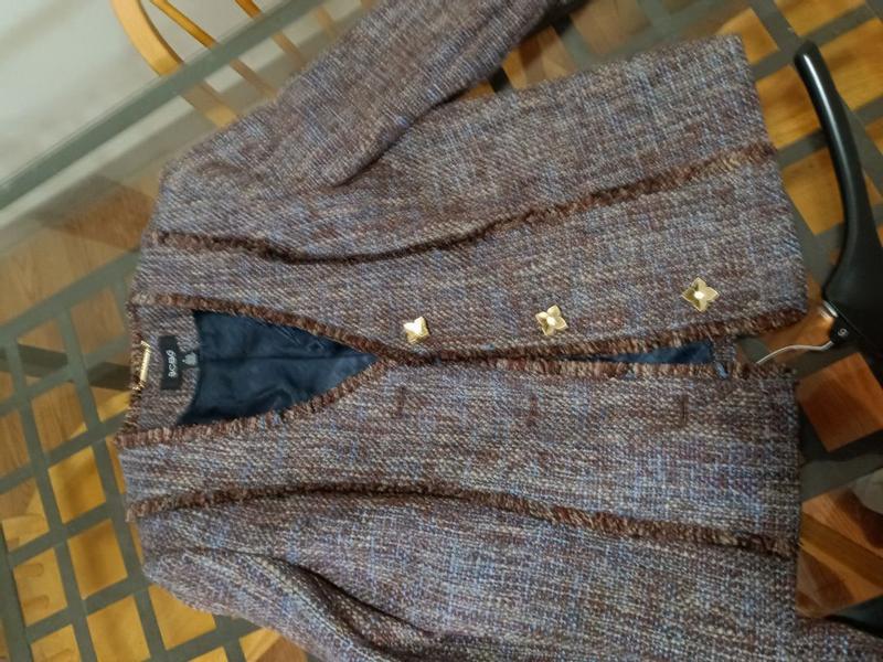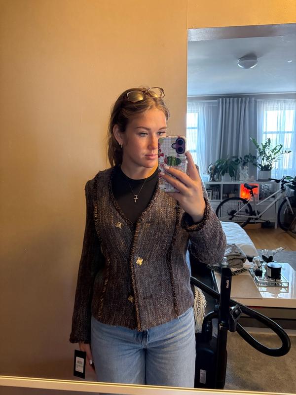This beautiful, well-made jacket is impressive. The fabric is incredibly soft and the attention to detail is amazing. The buttons are so cute and add the perfect touch to the overall design. Every time I wear it, I receive numerous compliments and it makes me feel confident and stylish. I highly recommend this jacket to anyone looking for a high-quality and fashionable addition to their wardrobe.