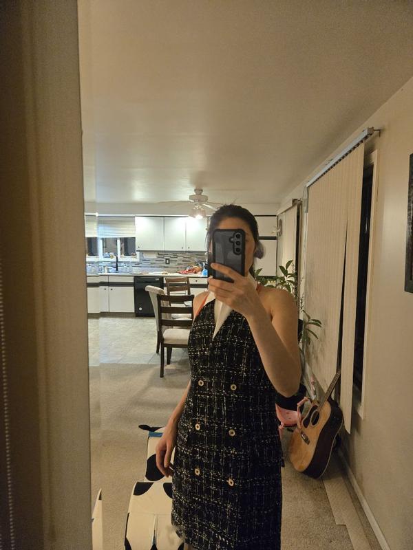 BCBGWomen's Plaid Boucle Twofer Halter Neck Dress
