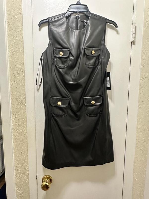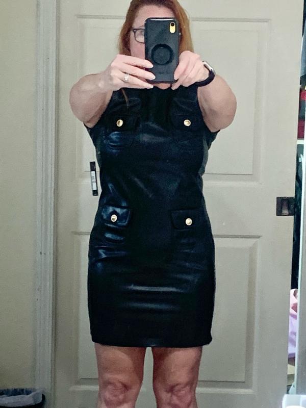 This dress is absolutely stunning. I love the a-line style because it fits any body type. It is elegant, but the fake leather gives it. A more edgy and modern look. The quality of this dress is perfection.