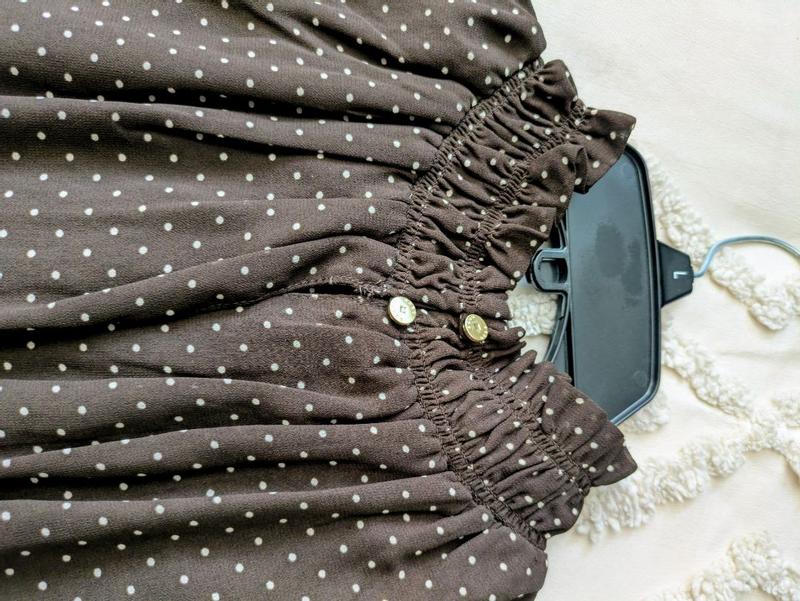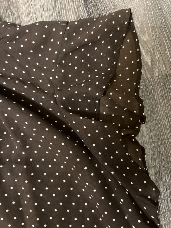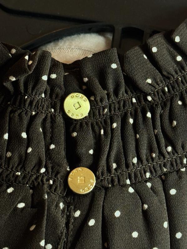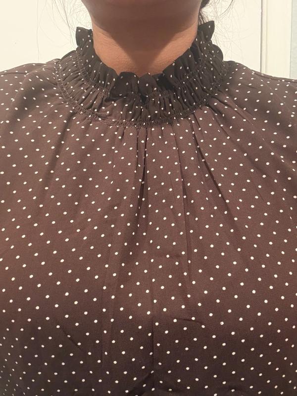 super cute and classy blouse! love the polka dots and mock neck. the fabric feels light but looks polished, perfect for work if you work in an office. runs a bit flowy, so it’s comfy but still put-together. definitely one of those pieces you can dress up or down easily.