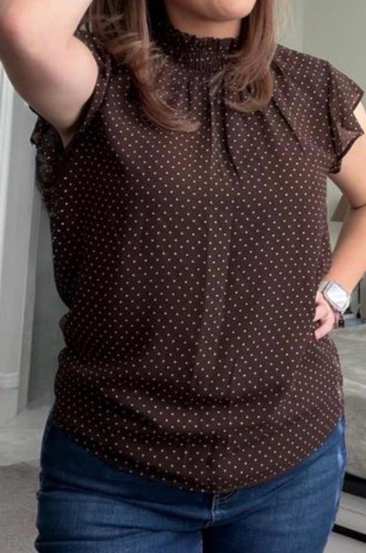 This is the most comfortable top I have gotten in a while! I was worried about the high neck design because I don’t like anything that’s too tight. Is nice and snug. I have never been a fan of brown but I really like how they designed the solid brow with white polka dots. This shirt will definitely be a go to In the summer! My only concern is the material, it usually makes me smell, so we will see how my body reacts.