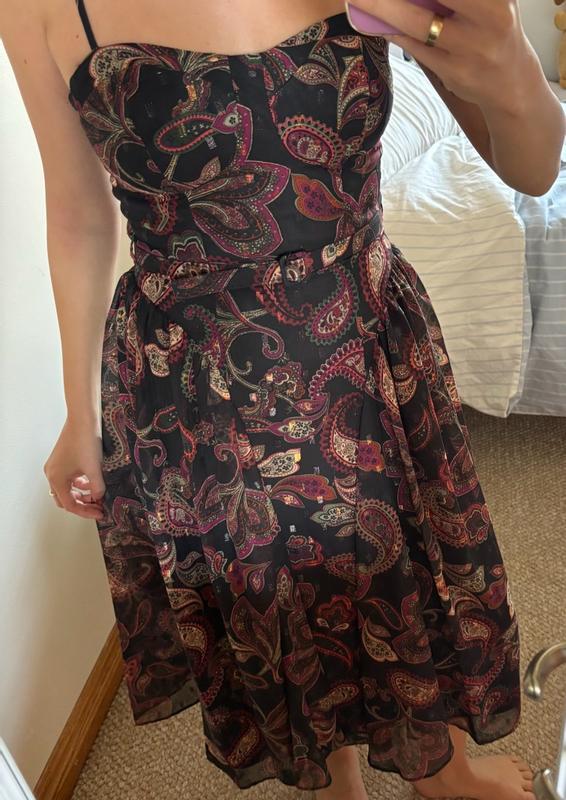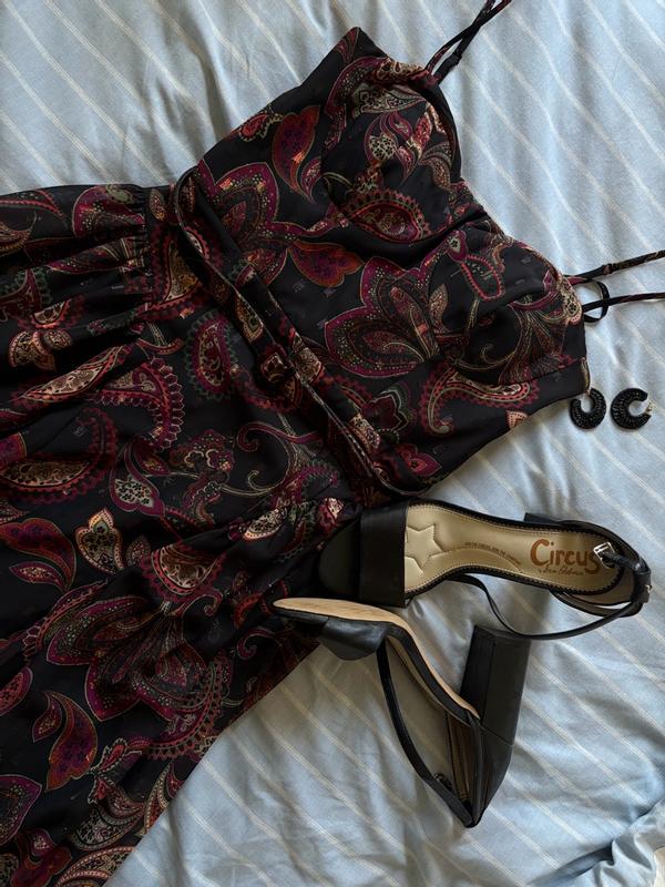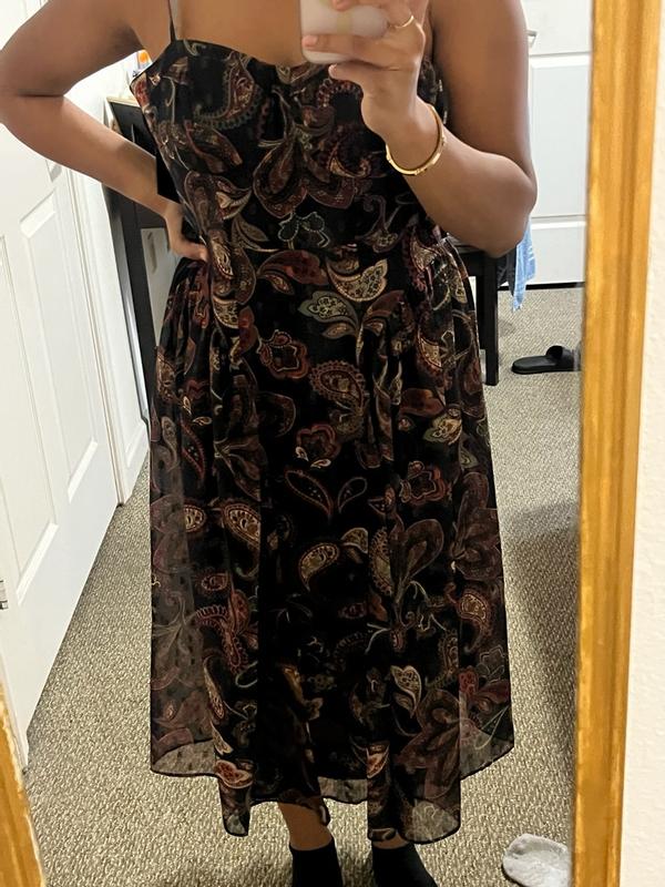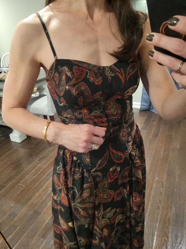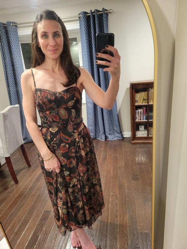 It is such a beautiful chiffon dress I got gifted from bcbg and Influenster. The midi dress has this really elegant print design with a thin strap. It's beautiful on an evening wear sizing fits me perfectly. I've gotten so many compliments wearing this beautiful dress on my night out. Such great quality that lasts.