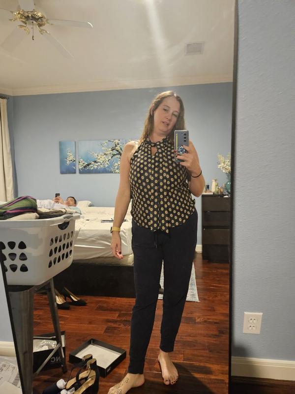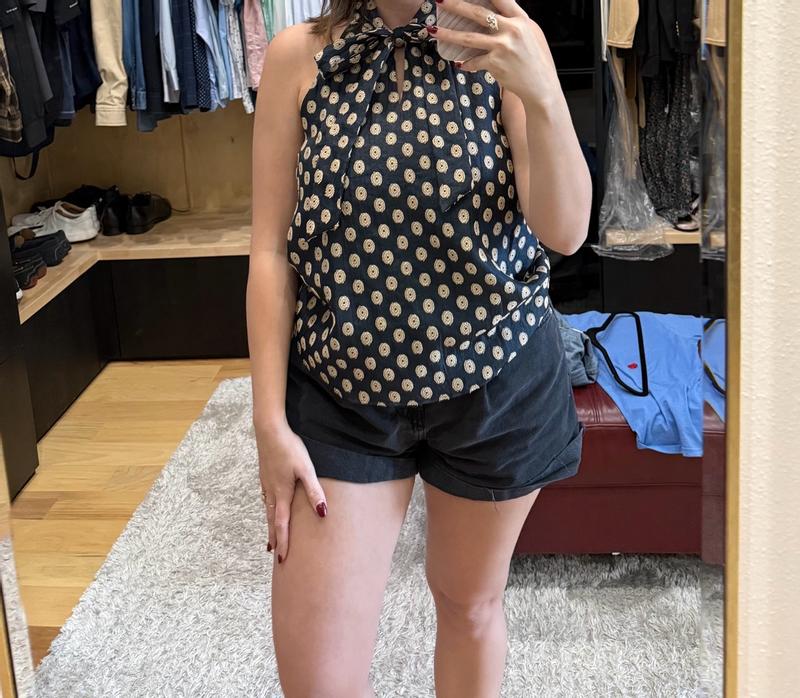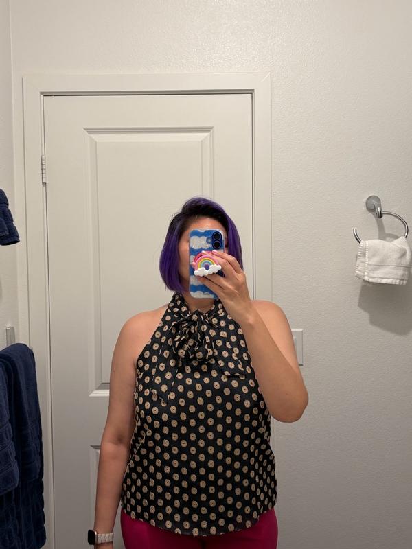 Really nice blouse you can easily dress up or dress down. Like that you can tie the neck however you want to. Excited for the warmer weather so I can actually wear it!