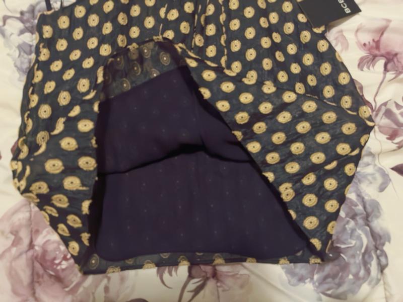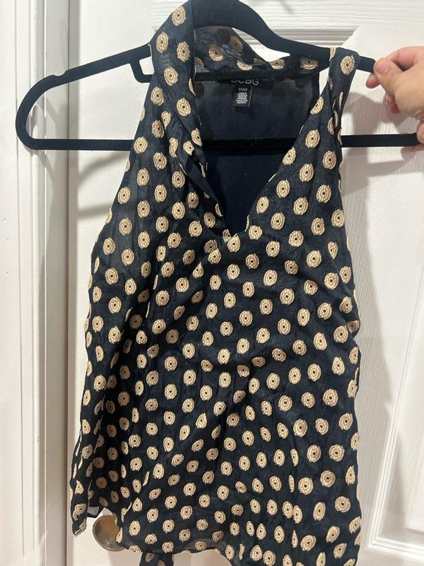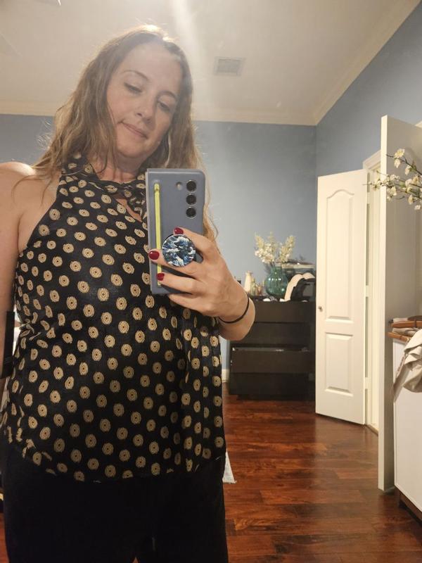 I love the pattern of this top it’s so beautiful and the gold adds a great contrast. It’s well made and has a nice fabric however the fabric fits very awkward and unflattering