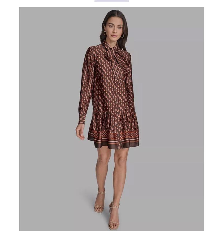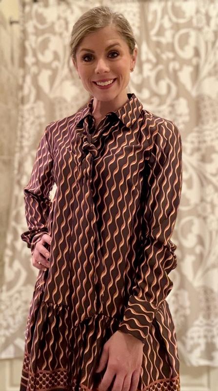 I love this dress! It’s so chic, comfy, and flattering. I usually don’t go for patterns this bold, but I’m so glad I stepped out of my comfort zone. The satin fabric feels luxurious, and the tie-neck detail adds such an elegant touch. The shift style drapes beautifully and makes it easy to wear for any occasion. A definite new favorite in my wardrobe!